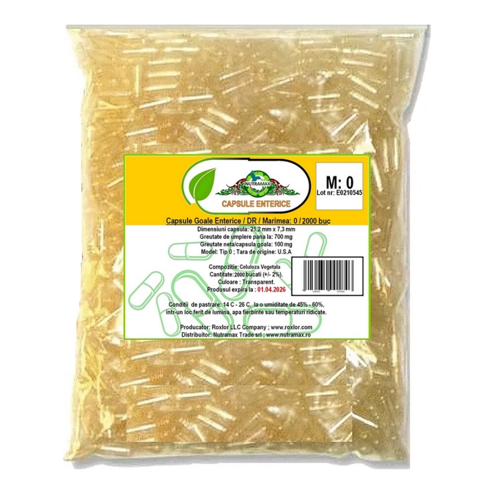 Capsulele comercializate de firma Nutramax Trade SRL, sunt capsule vegetale goale, grad farmaceutic, fabricate in SUA folosind un standard de productie de inalta calitate, din materiale sigure si sterile. Capsulele vegetale Enterice / DRcaps® sunt capsule acoperite enteric cu eliberare intarziata. Datorita rezistentei mari la dizolvare in stomac, absorbtia acestora in organism are loc mai tarziu, astfel incat substantele ingerate se dizolva in mod normal in intestinul subtire. Pentru a obtine o livrare intestinala optima, capsula DRcaps® trebuie sa fie suficient de rezistenta, pentru a rezista cu bine mediilor acide din stomac si a nu se dizolva inainte de a ajunge in intestinul subtire.