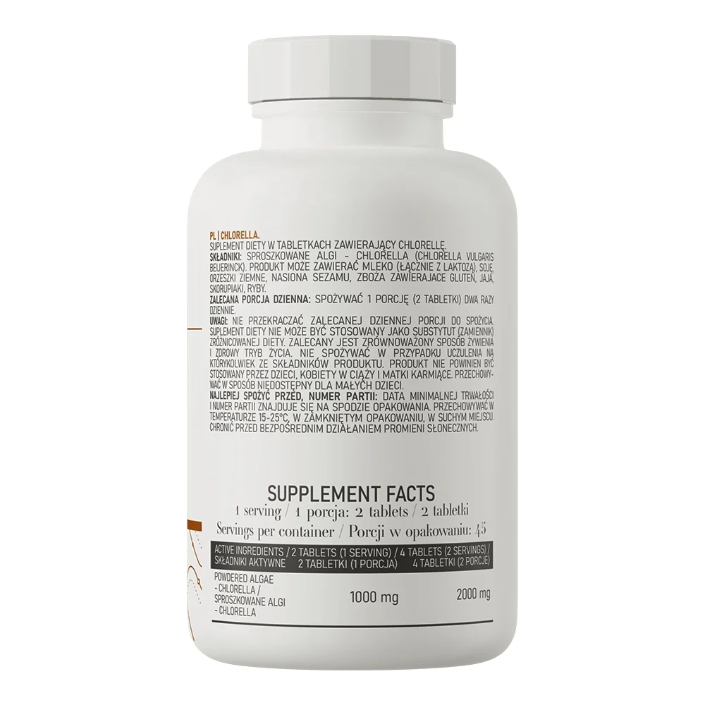 • Chlorella este un supliment alimentar care a fost dezvoltat pe baza algelor aparÈ›inând microalgelor unicelulare din clusterul verde. Produsul a fost recent clasificat drept superaliment datorită efectului său pleiotrop asupra corpului uman. Chlorella este o bogăție de vitamine, minerale È™i fitochimice care au un efect sănătos asupra corpului uman. Fabricata prin metoda Broken Cell Walls, care creÈ™te semnificativ absorbÈ›ia suplimentului. Chlorella aparÈ›ine algelor unicelulare. Datorăm acestei alge toată bogăția de minerale, vitamine, fitochimicale È™i macronutrienÈ›i continuti de ea care mai este si o sursă importanta de proteina vegetala. Chlorella este o sursă naturala de fier, care poate fi regăsită de obicei doar în carne È™i vitamina B12, de aceea este recomandata persoanelor care urmează o dietă vegană !