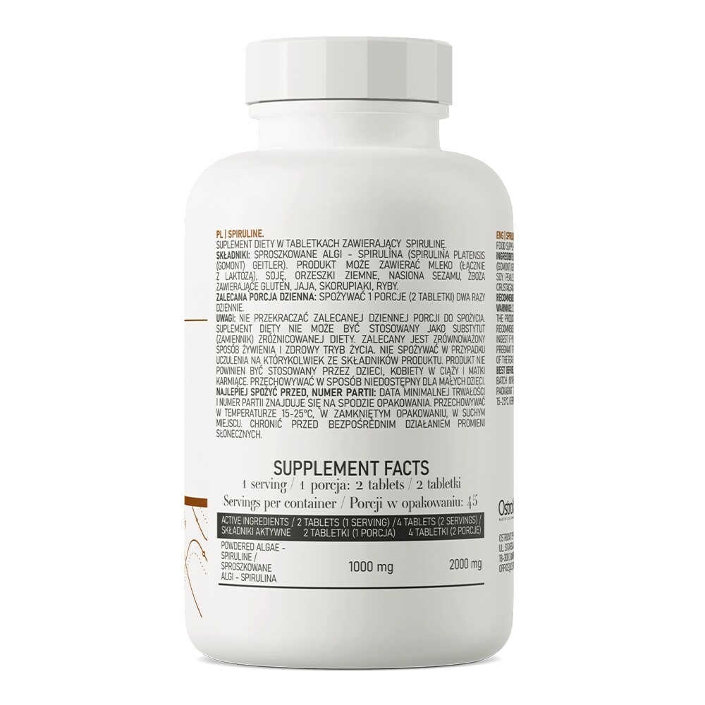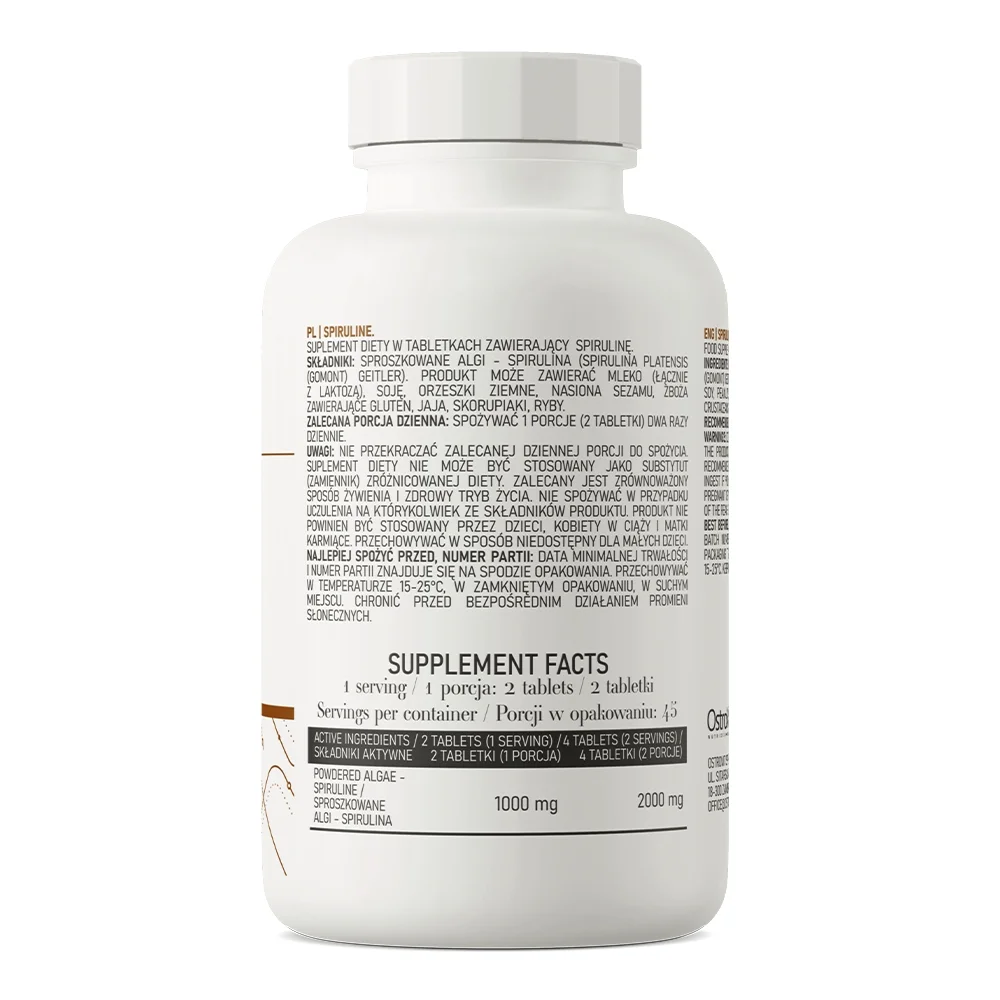 • Spirulina pulbere (Arthrospira platensis), celuloză microcristalină, fosfat de calciu, dioxid de siliciu, magneziu.