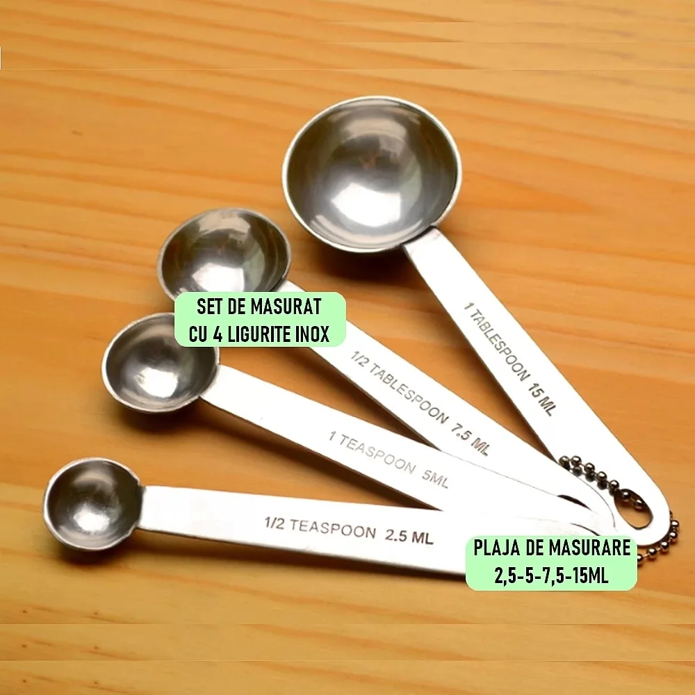 Setul de lingurite dozatoare din inox este un accesoriu profesional, indispensabil in recuzita oricarui consumator de produse naturiste. Cu o capacitate de masurare incepand de la 2.5gr si si terminand cu cea de 15gr, acest set de 4 lingurite dozatoare va poate scapa de frustrarile provocate de dozajele optime ale suplimentelor naturiste. Cu ajutorul acestui set de lingurite pentru dozare, acum veti putea portiona exact cantitatea de pulbere bioactiva dorita !