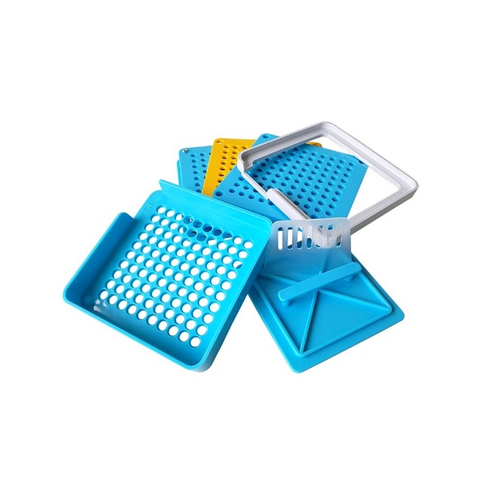 • 2 placi din plastic perforat pentru pozitionarea jumatatilor de capsule (vezi fig: 3,4)